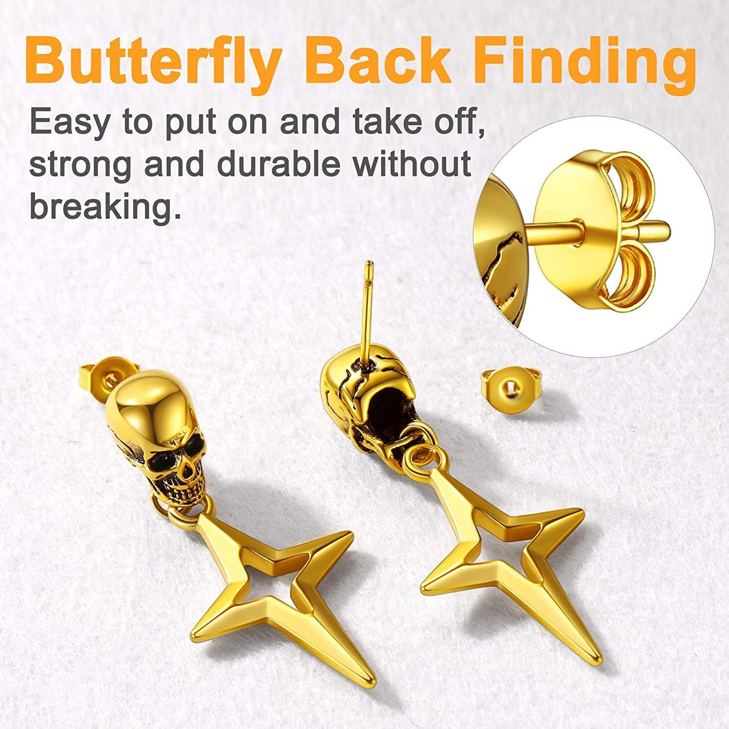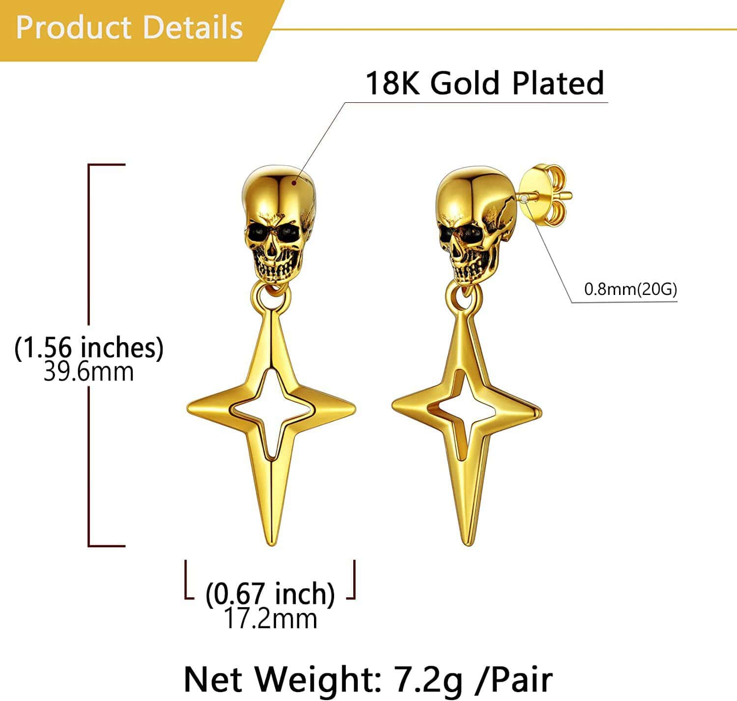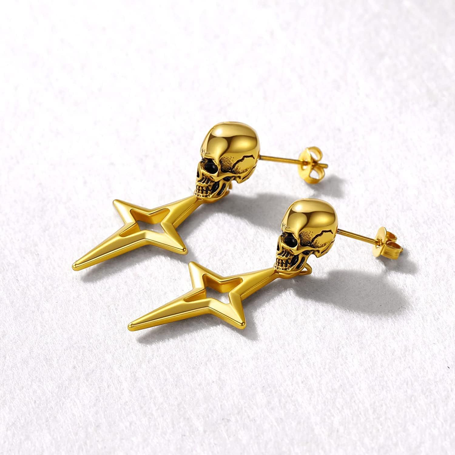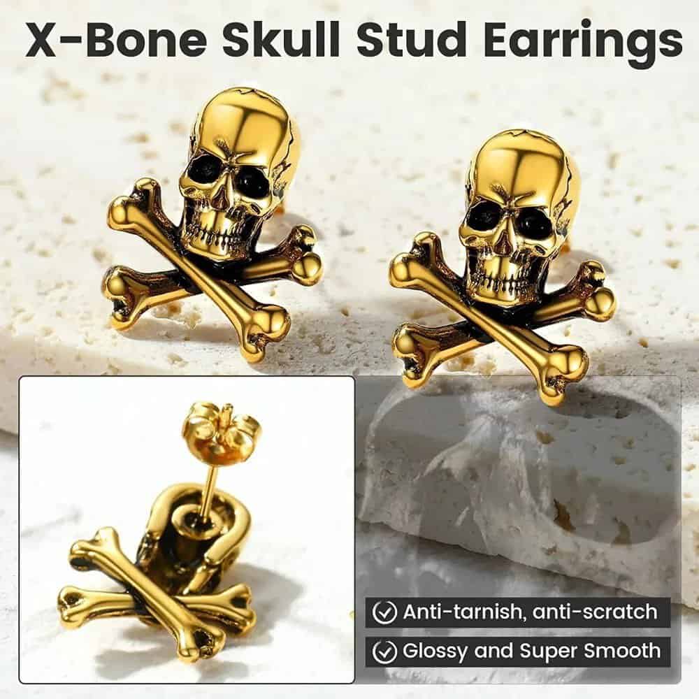 Arete calavera acero dorado