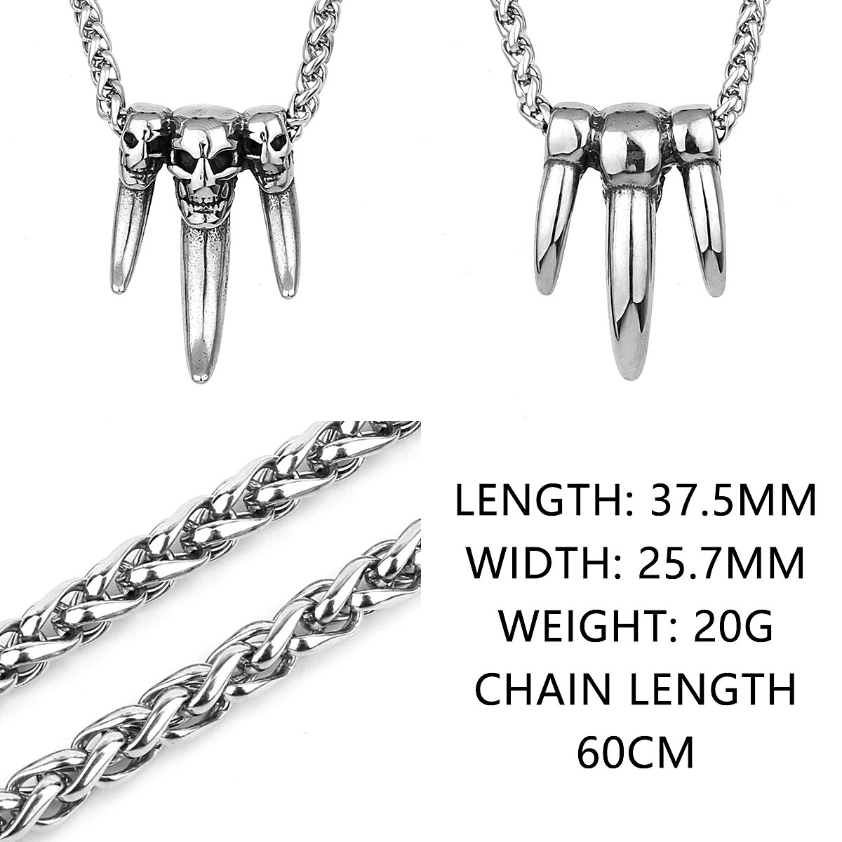 Collar de calavera con diente gótico de Acero inoxidable